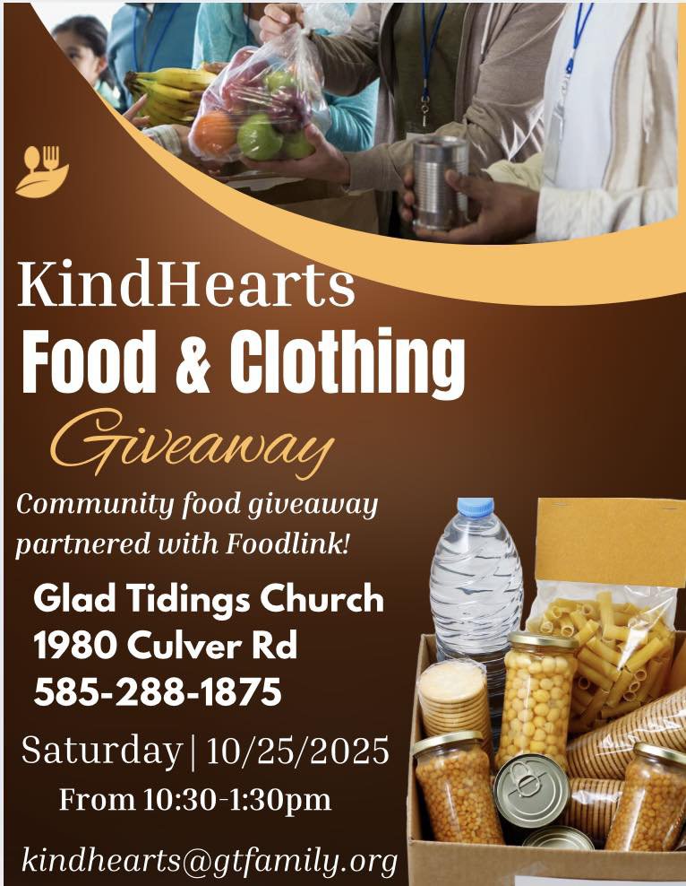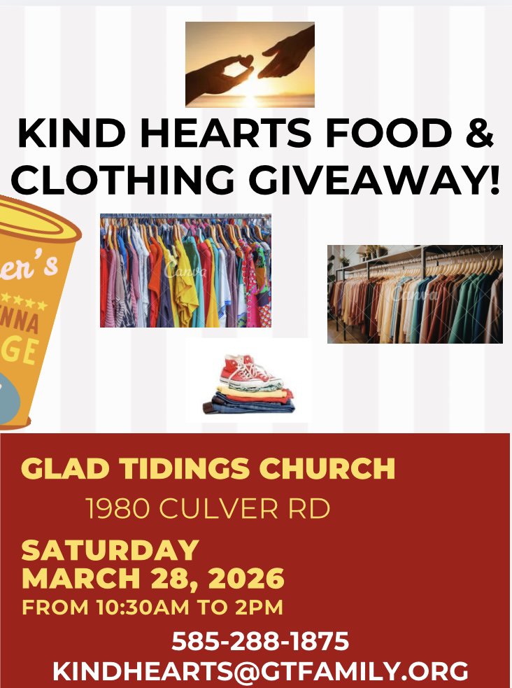 If you would like to continue supporting the pantry - which gives away food and clothing items each month, you can use the QR code below. If you are needing a boost yourself, please visit on the 4th Saturday (of most months) at the Glad Tidings Church located at 1980 Culver Rd. Come up the long driveway and into the parking lot behind the building.